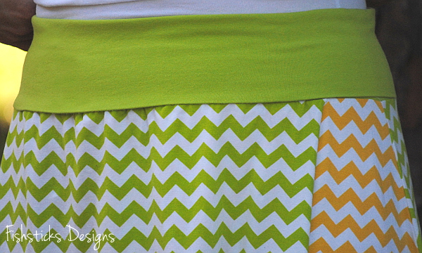 This comfortable and quick-sewing skirt has two options — the traditional skirt and the faux wrap skirt. Both styles are sewn with a cotton/spandex stretch jersey fold-over waistband. You can choose to wear the waistband high on your waist for a shorter length or low on your hips for a longer hem.