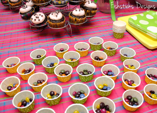 Other party fare included Unreal Unjunked candy-coated chocolates served in cute little snack cups, sliced strawberries, chocolate cookies, pink pomegranate chips and lemonade.
